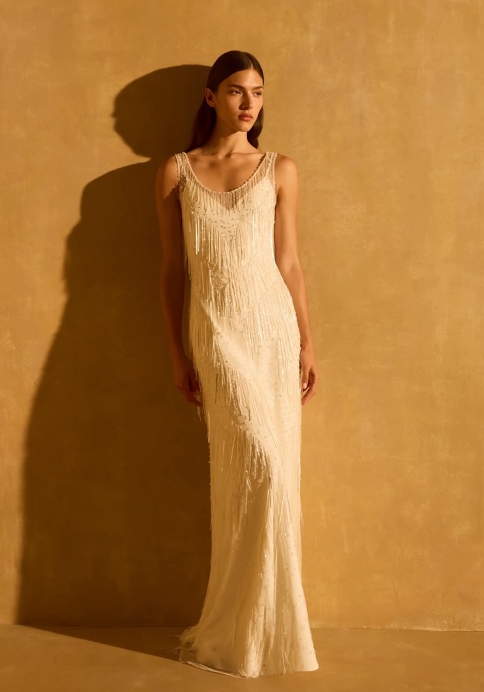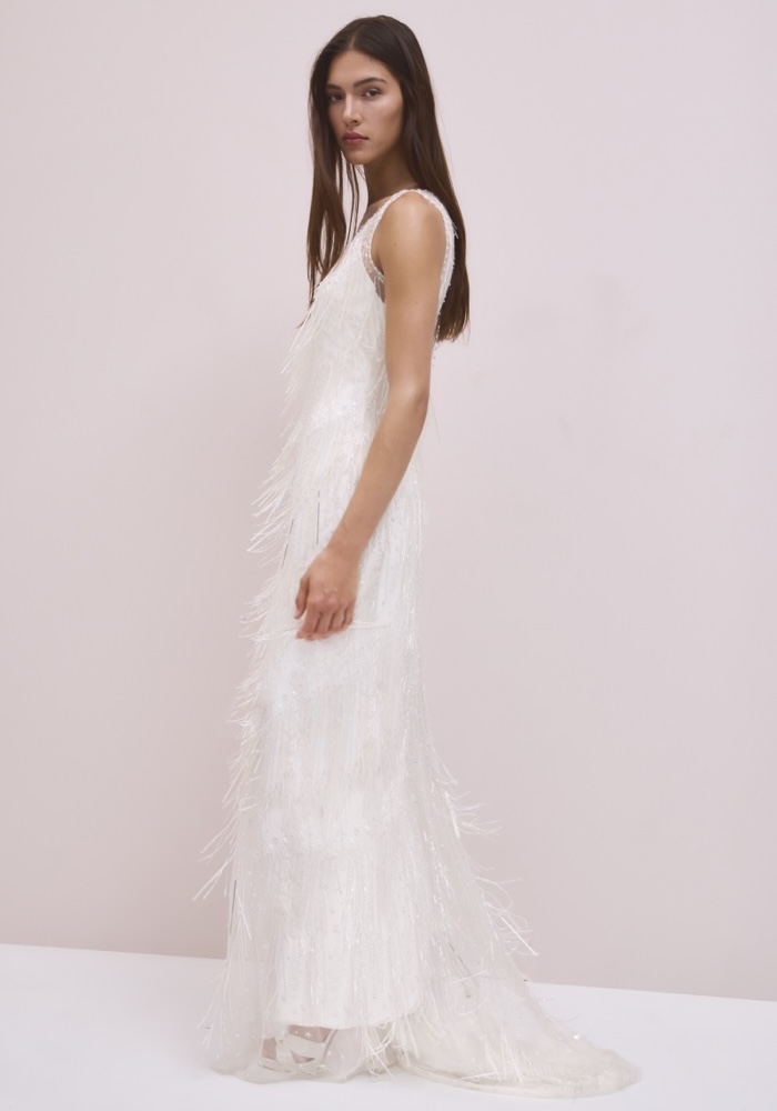 Embellished Fringed Wedding Dress